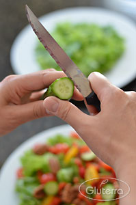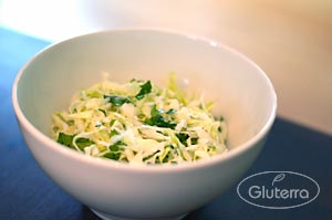 Before my husband had to go on a gluten-free diet, we went out to eat all the time. I love to cook, but I love to eat out too. Because of our busy schedule, we didn't have much time to cook, so we just went out. After my husband started on the gluten-free diet, however, we couldn't go to many of the places we used to go. That's when i started to cook regularly again. We now eat at home most of our meals. Naturally, I use my santoku knife every day. This slaw recipe is an example of how I put my knife to work. I'm proud to say that my fingers weren't harmed during the making of this dish :)